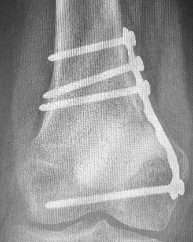 Funcionalmente el paciente esta muy contento, con una movilidad completa, sin dolor, y jugando futbol nuevamente.